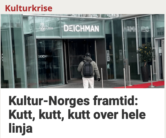 I Morgenbladet denne veka vågar Bernhard Ellefsen å vere visjonær om kulturpolitikken over ni sider. Han skriv at “kulturpolitikkens reelle subjekt igjen [må] være folket. Det er effekten som må styre bruken av disse dyrebare kulturkronene”. Ikkje institusjonane.