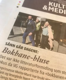 «VG fulgte reisen tett, med flere nyhetsartikler underveis. Men det er heller tvilsomt om avisa delte kronprinsessas ønske om litteraturformidling. Her er overskriftene til de fire VG-sakene som ble publisert på nett: «P3-Silje om å snakke om skjeden og anus med kronprinsparet på første rad: – Litt rart», «Kronprins Haakons ekskjæreste spøker med likheten til Mette-Marit», «Kronprinsesse Mette-Marit tok til tårene på ‘Bokbanen’» og «Mette-Marit gjenbrukte bokbane-bluse – her er alle detaljene».