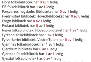 Eller: At over to hundre fattige lyrikk-entusiastar har knabba boka! Vi noterer i alle fall at mange eksemplar er utlånte, sjå illustrasjonen øverst. Dette må vere eit nasjonalt lyrikk-løft!