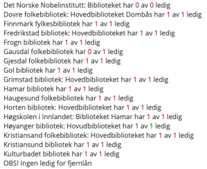 «Det Norske Nobelinstitutt: Biblioteket har 0 av 0 ledig» …