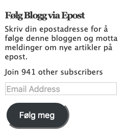 Om du vil ha blogginnlegga i e-postkassa straks etter publisering, gå til denne boksen nede til høgre, skriv epostadressa di og klikk «Følg meg».