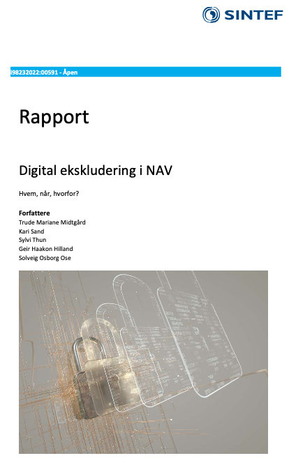 I den omfattande (122 sider) Sintef-rapporten «Digital ekskludering i NAV» er folkebiblioteka og dei tilsette heilt sentrale. Bibliotektilsette er blant respondentane i ei spørjeundersøking, og det går fram at det er «misnøye blant informantene i helse- og velferdstjenestene og bibliotekene som opplever økt tilstrømming og behov for bistand hos sine sårbare brukere som følge av overgangen til digitale selvbetjeningsløsninger i NAV. En stor del av respondentene i denne studien opplever at de gjør oppgaver som de mener egentlig er NAV sitt ansvar, og som går på bekostning av egne arbeidsoppgaver».