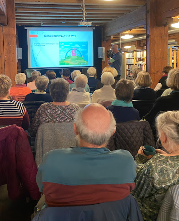 Men dette kan bety eit løft for folkebiblioteka, som ikkje er kjende for dyre arrangement, faktisk gratis inngang ofte. Sjå fotoet frå ein presentasjon av ei ny lokalhistorisk bok på Moss bibliotek i førre veke. Stappfullt hus!